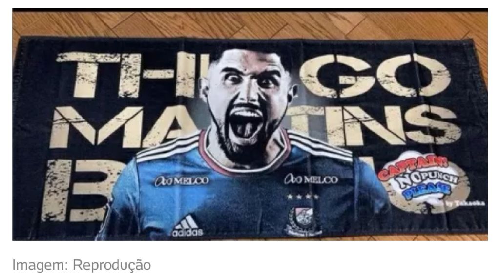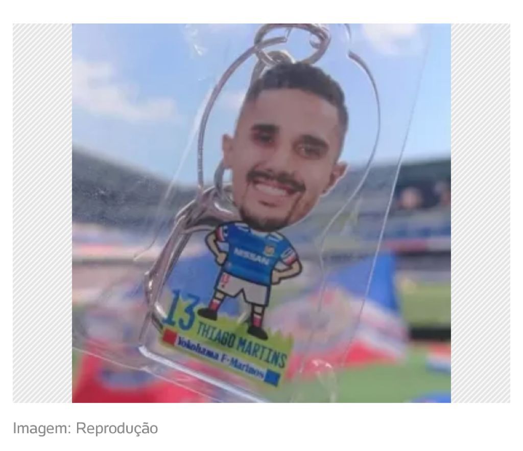 O zagueiro Thiago Martins não entende exatamente todas as palavras que vêm das arquibancadas, mas sabe: caiu nas graças dos torcedores do Yokohama F. Marinos, do Japão. O defensor com passagem pelo Palmeiras já atua do outro lado do mundo há quatro anos e virou até chaveirinho nas mãos dos japoneses. Titular absoluto e capitão do time, Thiago Martins falou em entrevista ao UOL Esporte sobre sua fase no Japão. O atleta de 26 anos se tornou o rosto de diversos souvenirs. Além de chaveiros, estão à venda cachecóis, camisetas e bonecos que os torcedores do Yokohama Marinos levam ao estádio.