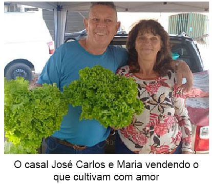 Já na barraca do Sr. José Carlos e da sua esposa D. Maria é vendida a produção apenas de hortaliças e cheiro verde. “Temos água abundante na propriedade, então facilita muito a produção. Os clientes já estão acostumados, é preciso chegar cedo para conseguir comprar. Então antes das 10h praticamente já terminou tudo. Nós vendíamos ovos, mas com a pandemia tivemos que parar. Retomamos e os clientes voltaram,.No início foi lento, mas agora já estamos com um movimento maior que antes. As pessoas passaram a se preocupar mais com a alimentação saudável depois da pandemia”, falou José Carlos.