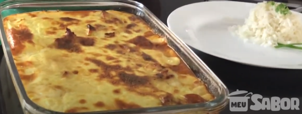 - Cubra com papel alumínio e leve ao forno aquecido por 15 minutos, retire o papel alumínio e deixe por mais 20 minutos ou até dourar.