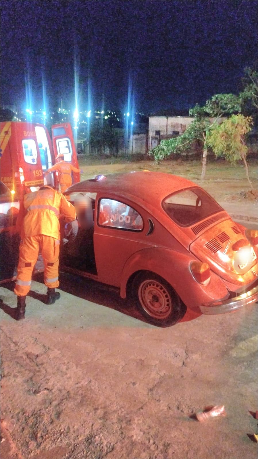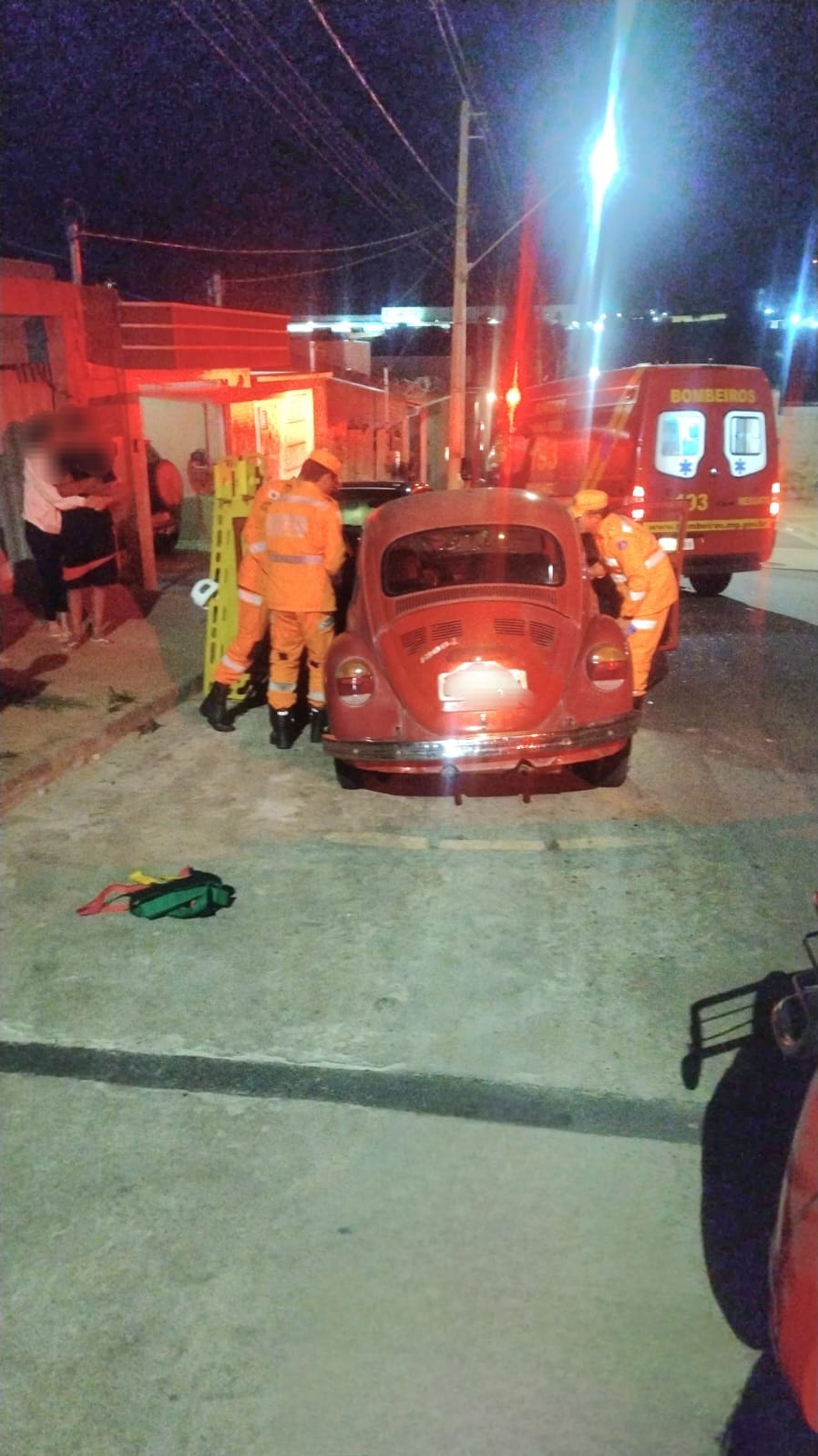 A equipe de salvamento do Corpo de Bombeiros também atuou na retirada da vítima de dentro do carro, garantindo segurança durante todo o atendimento.