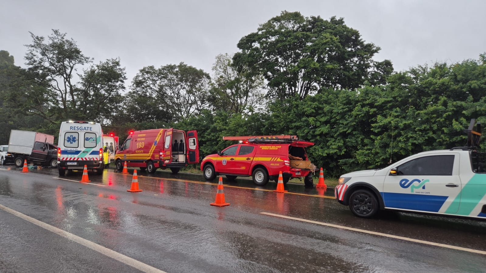No local, foi montada uma operação conjunta entre o Corpo de Bombeiros, equipes do SAMU e funcionários da concessionária responsável pela rodovia para garantir a segurança da cena e prestar atendimento às vítimas.