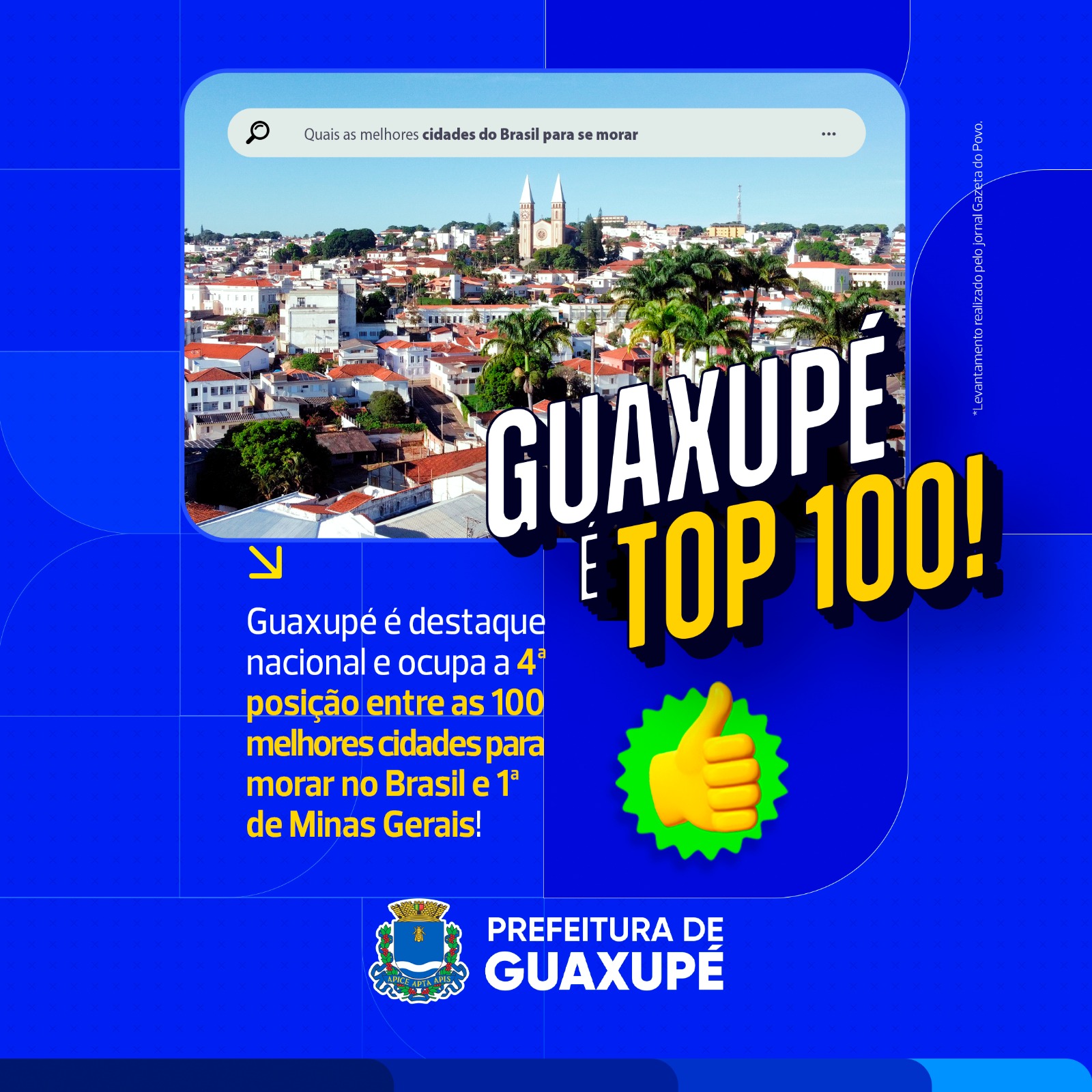 A cidade de Guaxupé foi recentemente destacada em um levantamento realizado pelo jornal Gazeta do Povo, posicionando-se entre as 4 melhores cidades para morar no Brasil. Este estudo reconheceu Guaxupé como a cidade mineira mais bem avaliada, ocupando o 4º lugar no ranking geral. O levantamento identificou 100 cidades destacadas pela qualidade de vida no … Continue lendo Guaxupé entre as 10 melhores cidades para morar no Brasil