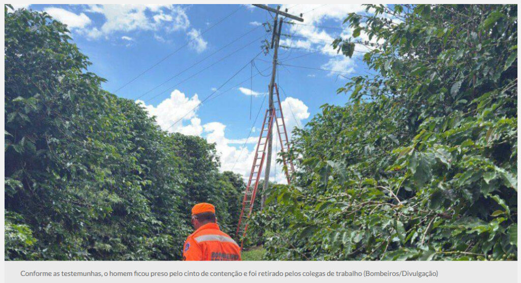 Segundo relatos coletados pelos militares, o homem era funcionário de uma empresa fornecedora de sinal de internet. Ele estaria realizando o trabalho dentro de uma fazenda na área rural da cidade. Ainda conforme as testemunhas, o homem ficou preso pelo cinto de contenção e foi retirado pelos colegas de trabalho.