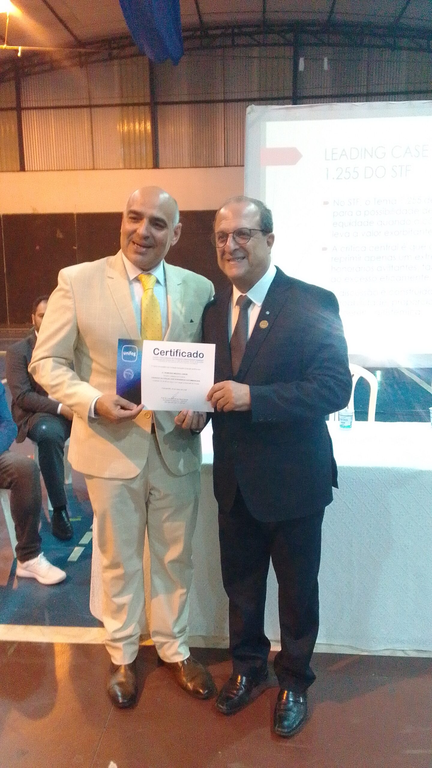 No final do evento o palestrante foi condecorado com um certificado de palestrante além de ser agraciado com um brinde de produtos locais.