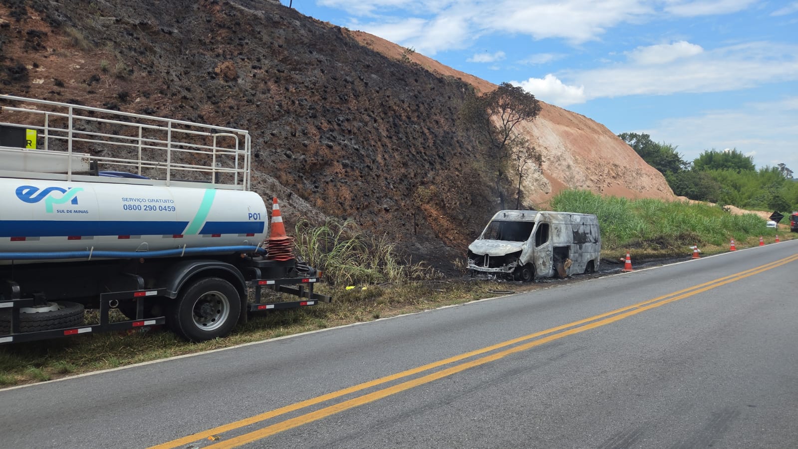 Na manhã do sábado (27), um incêndio atingiu uma ambulância da concessionária EPR na rodovia MG-290, km 37, nas proximidades do município de Ouro Fino, no Sul de Minas.