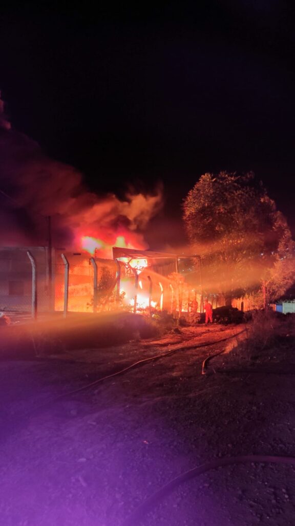 Na noite de sexta-feira (03), o Corpo de Bombeiros de Alfenas foi acionado para combater um incêndio de grandes proporções em um galpão localizado no bairro Distrito, em Alfenas.