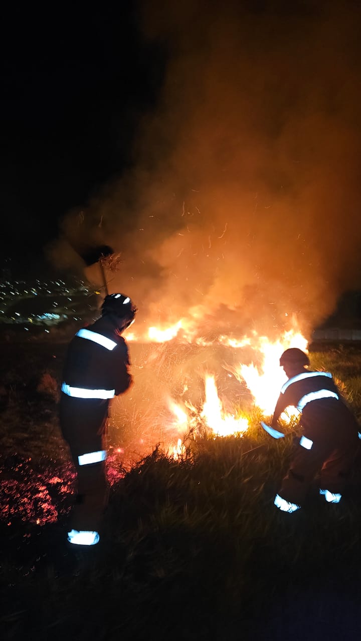 Devido à vegetação elevada e seca, o incêndio se propagou rapidamente. Em determinado momento, uma das frentes de fogo atingiu uma região com maior concentração de galhos secos, exigindo emprego total da capacidade do caminhão de combate, que possui 5.000 litros de água não potável.