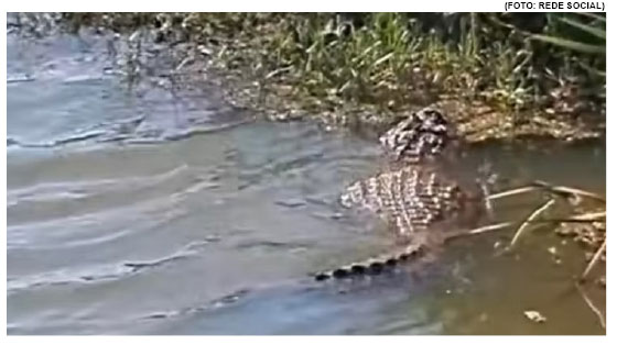 Aparição rara, danos reais – Segundo relatos, o animal teria tentado se desvencilhar do artefato de pesca, o que despertou ainda mais a tensão no local. Equipes da Polícia Militar e da Secretaria Municipal de Meio Ambiente foram acionadas para acompanhar a ocorrência. No entanto, antes que a captura técnica fosse realizada, o jacaré conseguiu escapar e mergulhou novamente no lago.