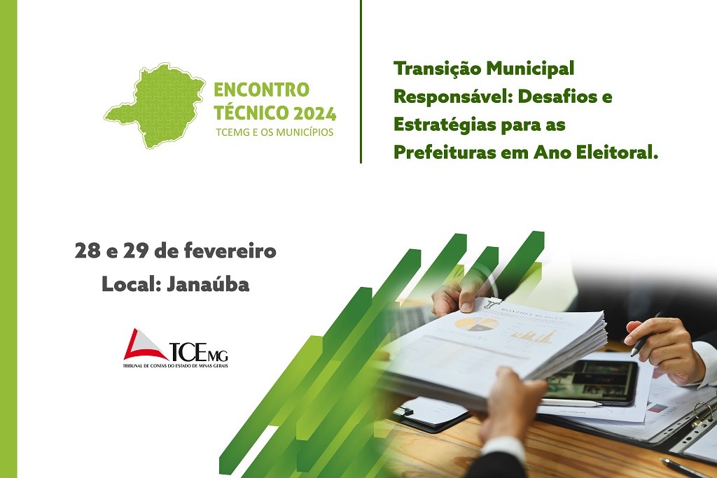 “Transição Municipal Responsável: Desafios e Estratégias para as Prefeituras em Ano Eleitoral”. Esse é o tema do “Encontro Técnico TCEMG e os Municípios 2024”, que, este ano, levará a caravana de palestras técnicas para Janaúba, Unaí, São João Del Rey, Boa Esperança, Coromandel e Muriaé, encerrando o ciclo em Belo Horizonte, em agosto. O pontapé inicial das atividades pedagógicas será em Janaúba, no Norte de Minas, nos dias 28 e 29 de fevereiro.