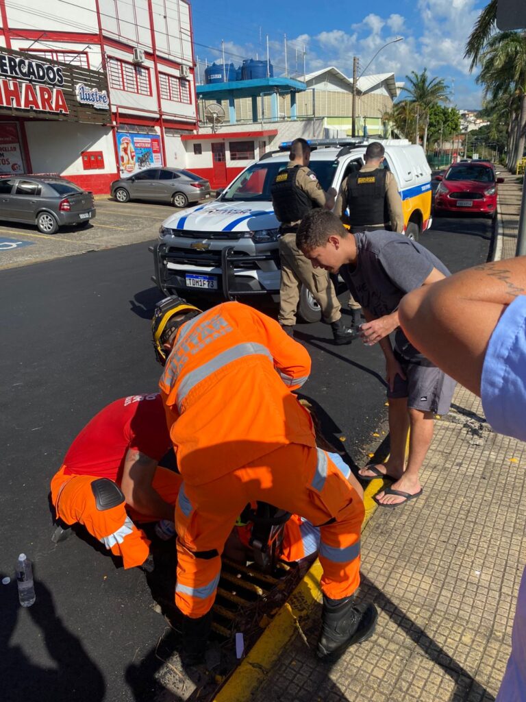 Jovem fica com perna presa em bueiro na área central da cidade e é resgatada pelos bombeiros em Extrema