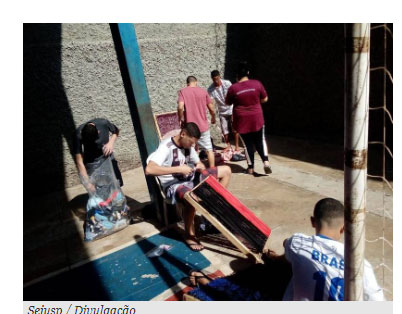Seis jovens que cumprem medida socioeducativa de internação em Passos, no Sul de Minas, participam de uma oficina de confecção de tapetes com tiras de tecido reciclado. A atividade conta com o apoio de confecções locais, de pequeno e grande portes, que integram uma das principais bases econômicas da região. Empresas e costureiras independentes fazem doações de retalhos de tecidos que, em sua maioria, seriam descartados. Esse material é reaproveitado pelos jovens na produção dos tapetes.