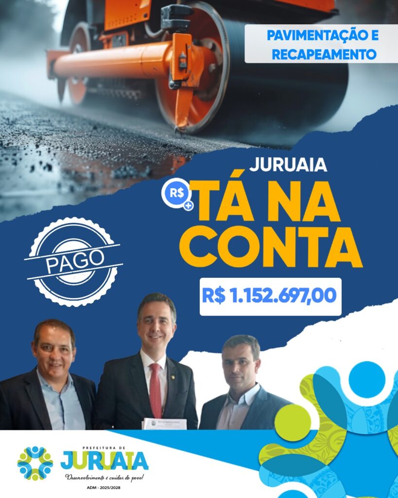A Prefeitura de Juruaia segue investindo na melhoria da infraestrutura urbana. O município recebeu recursos no valor de R$ 1.152.697,00, destinados à execução de obras de pavimentação asfáltica e recapeamento em diversas vias do perímetro urbano, garantindo mais segurança, mobilidade e qualidade de vida para a população.