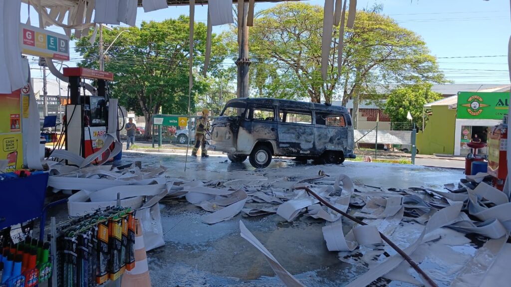 Um incêndio em uma Kombi dentro de um posto de combustíveis, no bairro Vila Borges, em Alfenas, mobilizou equipes do Corpo de Bombeiros na manhã do sábado (25/10/2025).