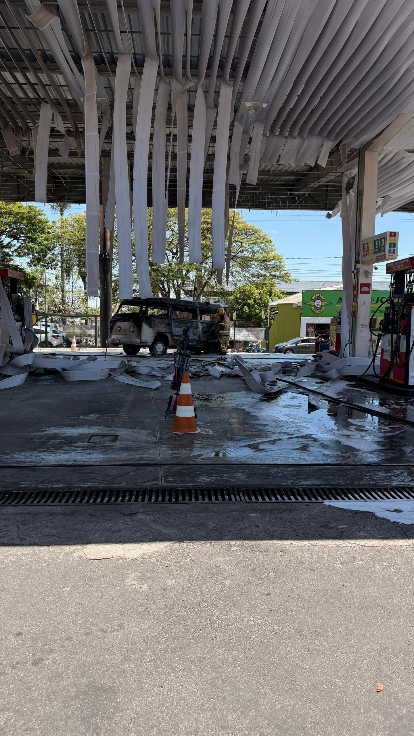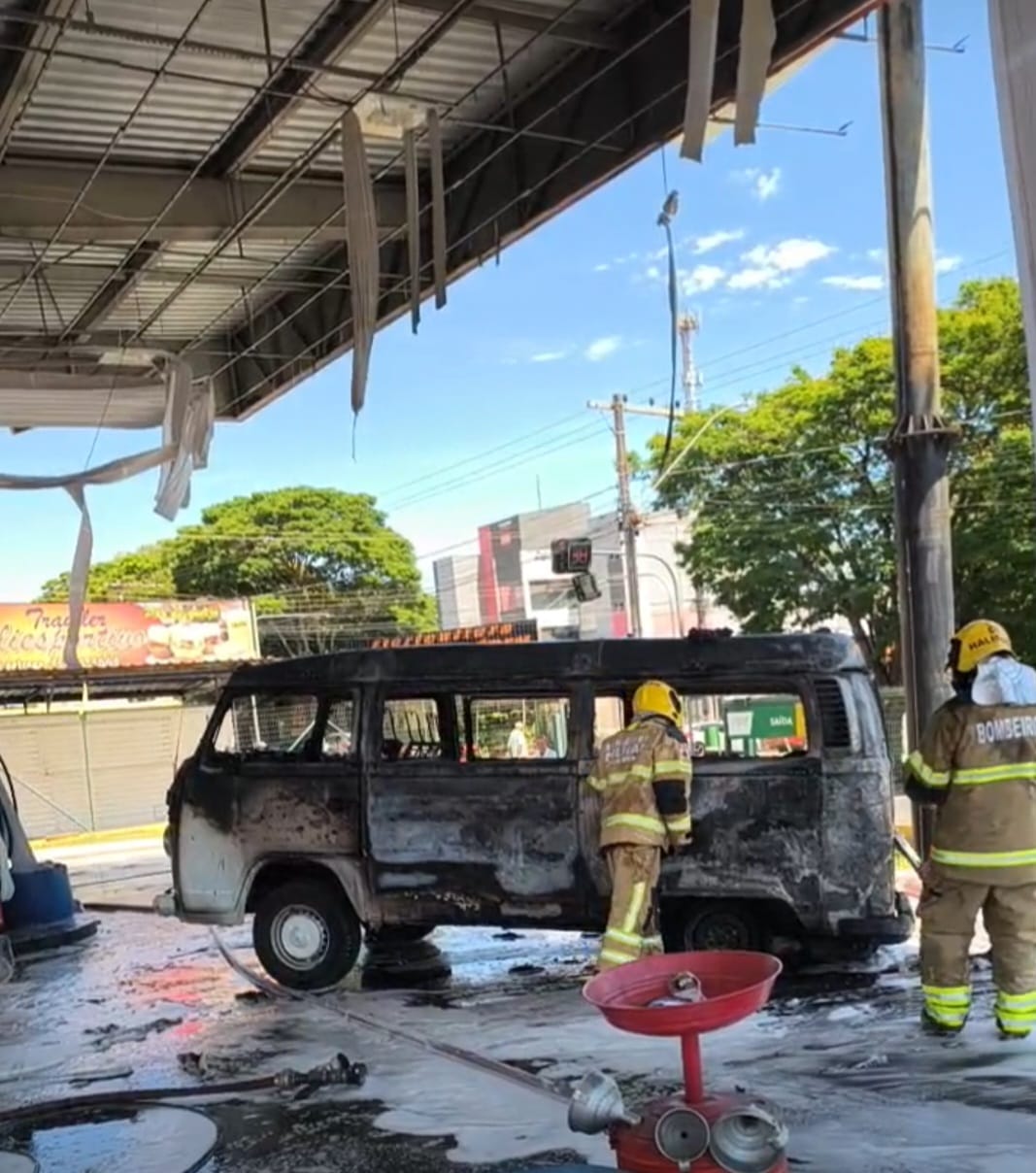 Um incêndio em uma Kombi dentro de um posto de combustíveis, no bairro Vila Borges, em Alfenas, mobilizou equipes do Corpo de Bombeiros na manhã do sábado (25/10/2025).