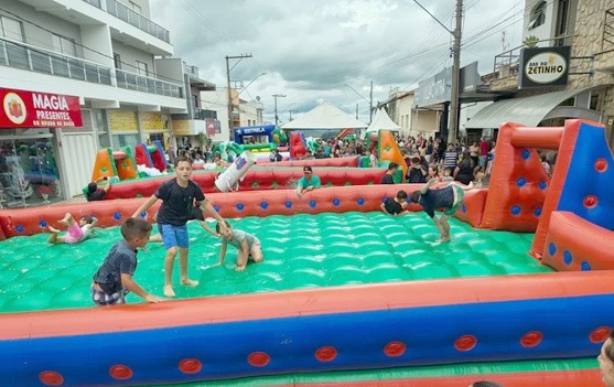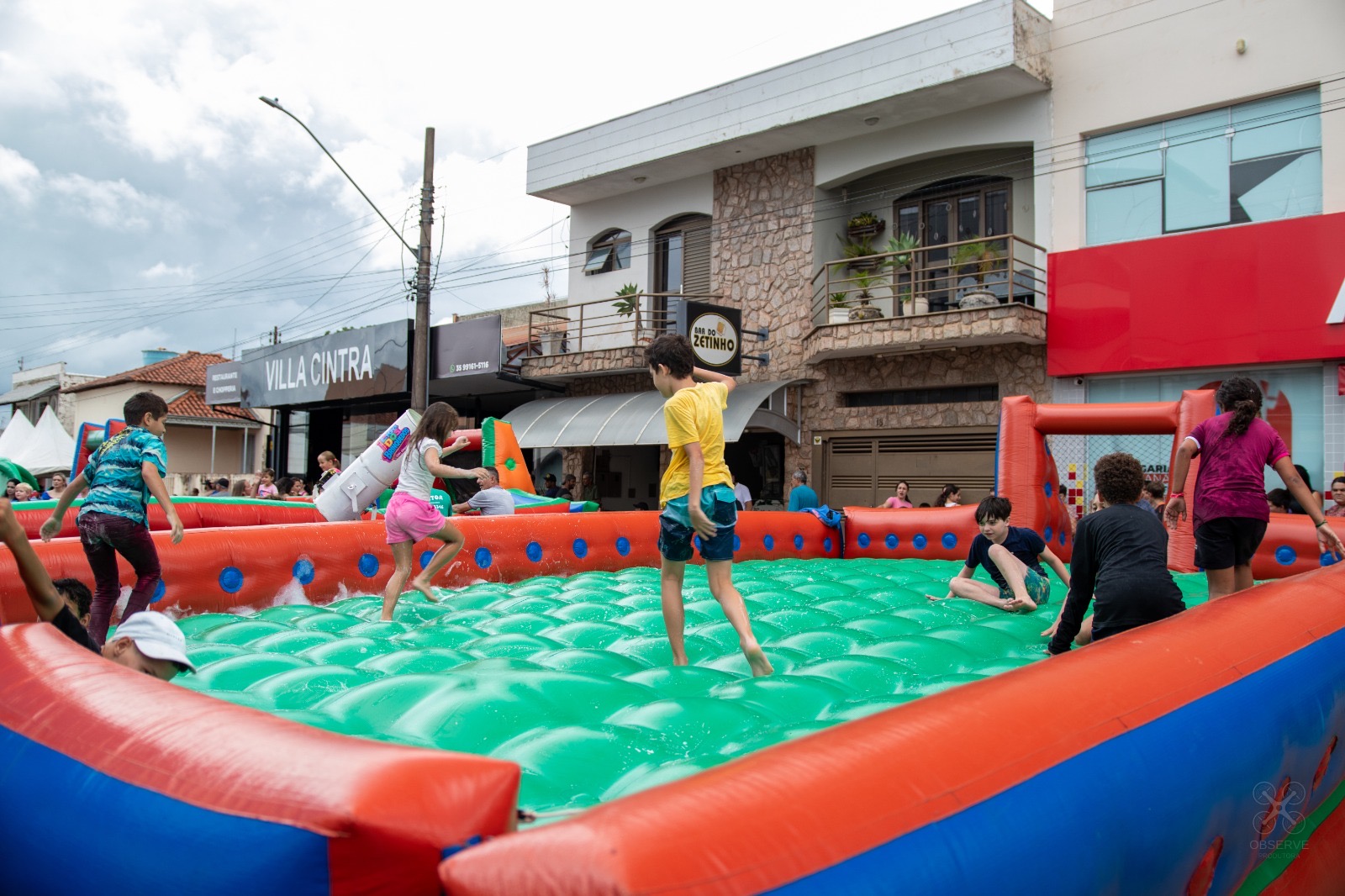 Mesmo com o tempo chuvoso, a animação tomou conta da rua que virou um grande parque de diversão . Brinquedos infláveis, pula-pula e a distribuição de guloseimas, como pipoca, sorvetes e cachorro-quente, garantiram a alegria da criançada, enquanto os adultos acompanharam a festa em clima de confraternização.