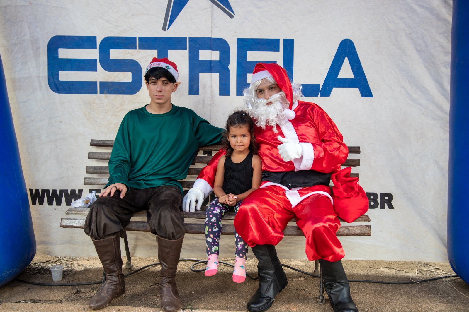 O momento mais aguardado aconteceu por volta das 10h, com a chegada do Papai Noel de paraquedas no Estádio Antônio Milhão, arrancando aplausos e encantando o público. Em seguida, a programação continuou na Rua João Pinheiro, nas proximidades da Borracharia Labanca, onde as atividades se estenderam ao longo do dia.