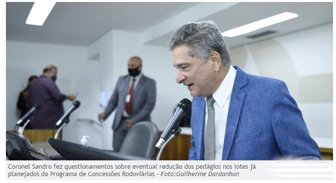 Coronel Sandro também questionou sobre quantas praças de pedágio teriam nesses lotes. Fernanda Alen explicou que a definição é feita com base em estudos de tráfego e topografia e que serão oito nos dois primeiros lotes.