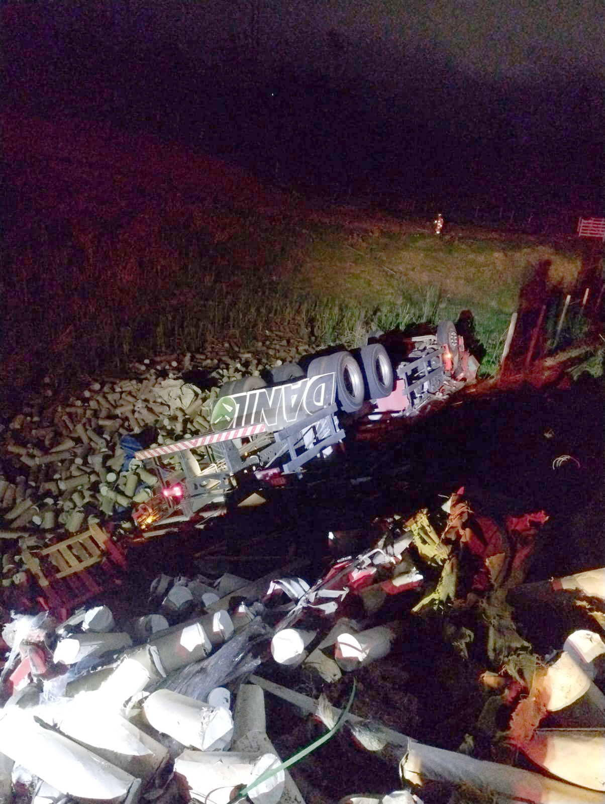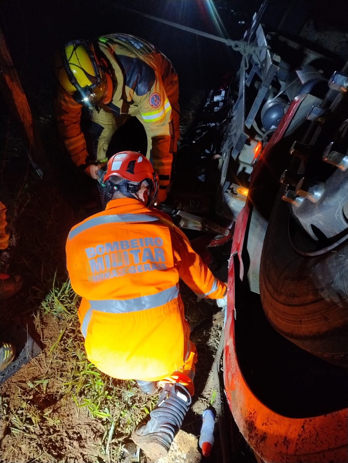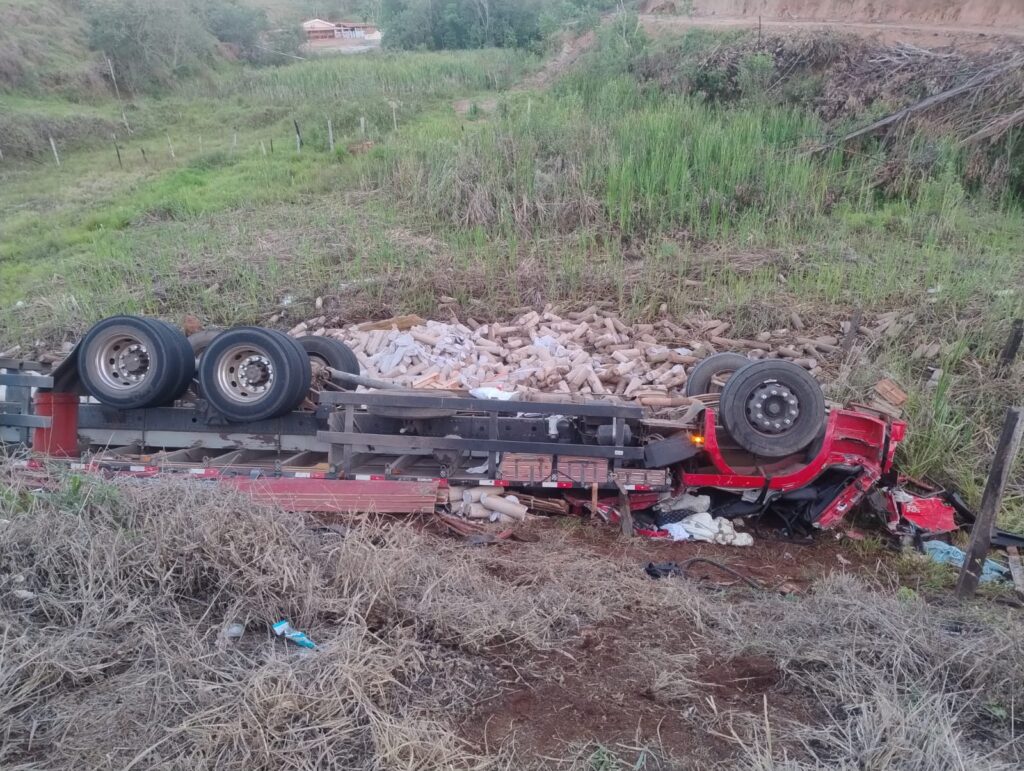 Ao chegarem ao local, os bombeiros encontraram a carga espalhada pelo acostamento e o veículo capotado logo abaixo da pista, junto ao restante do material transportado. O motorista, um homem de 24 anos, foi encontrado preso às ferragens e já sem sinais vitais, segundo confirmação da equipe médica do SAMU.