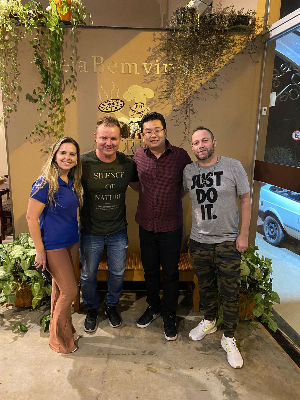 André Yuki agradeceu aos empresários Rodolfo Correia e Marcelo Bicalho, da Saboretto Pizzaria Bistrô, que receberam o Happy Hour Empresarial de braços abertos.