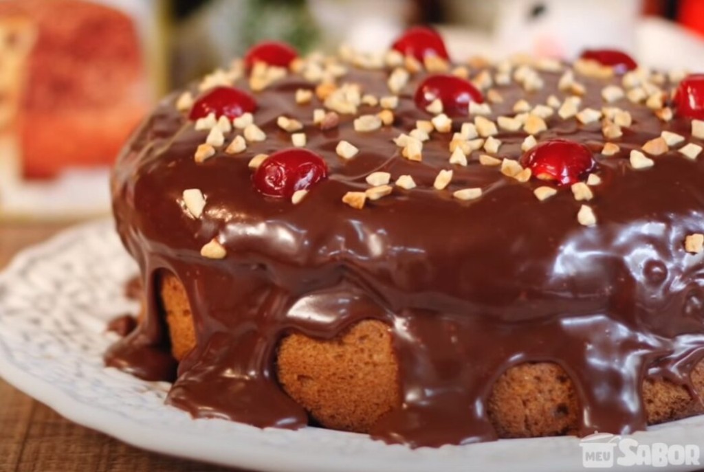- Espalhe a trufa por cima da Colomba e decore com as castanhas de caju e as cerejas.