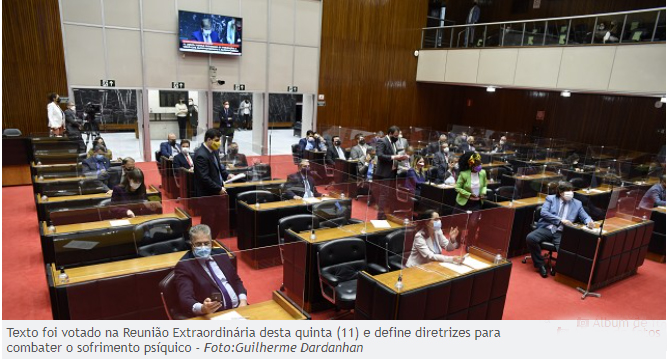 Em Reunião Extraordinária na manhã da quinta-feira (11/11/21), o Plenário da Assembleia Legislativa de Minas Gerais (ALMG) aprovou em 1º turno o Projeto de Lei (PL) 1.197/19, que originalmente institui o Programa de Prevenção de Violências Autoprovocadas ou Autoinfligidas, com a finalidade de atender e capacitar policiais civis e militares para o auxílio e o enfrentamento da manifestação do sofrimento psíquico e do suicídio.