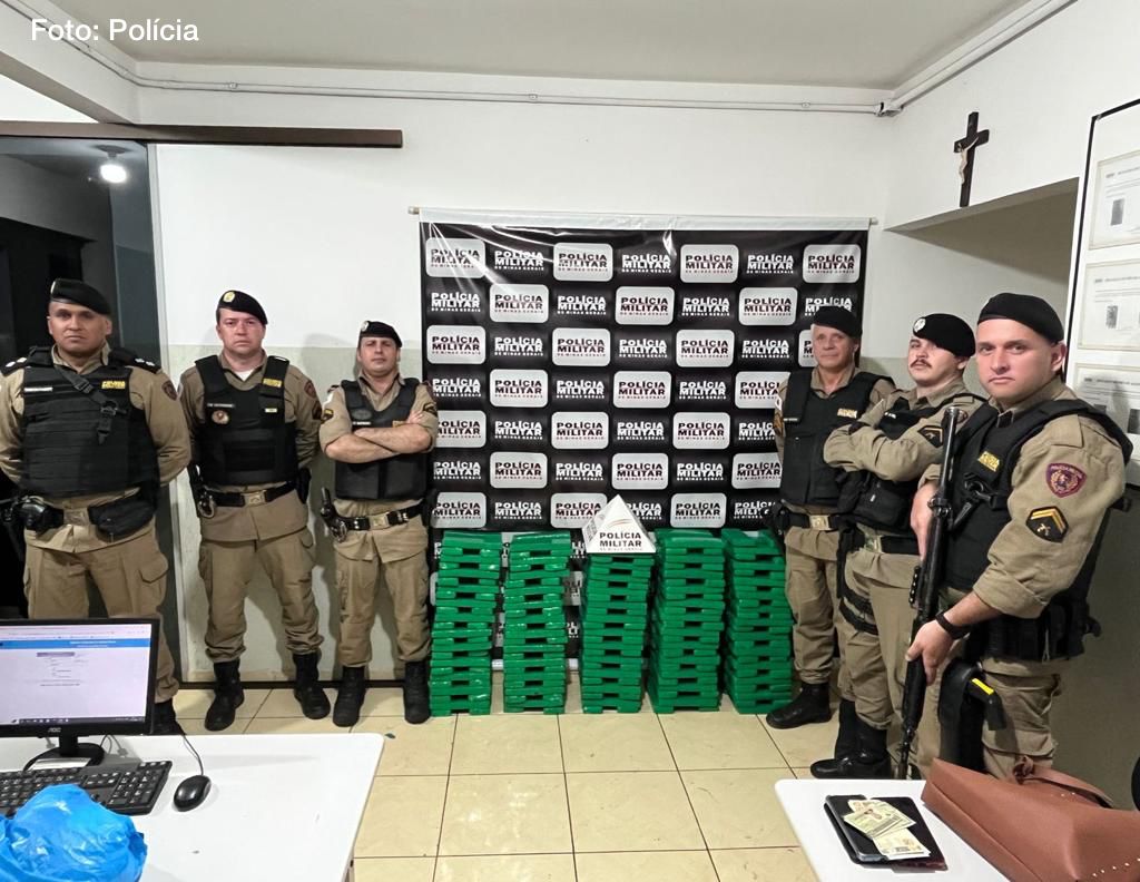 A busca no veículo resultou na apreensão de 156 Kg (cento e cinquenta e seis quilos) de maconha divididas em 242 tabletes. Celulares e pequena quantia em dinheiro também foram apreendidos.