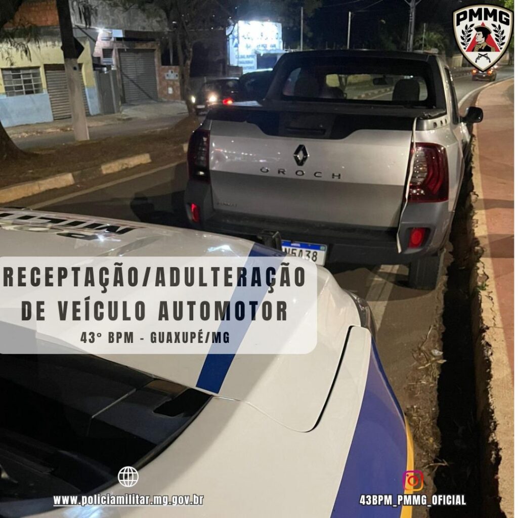 Diante dos fatos, foi dada voz de prisão ao autor pelos crimes de receptação e adulteração de sinal identificador de veículo automotor. Ele foi encaminhado à Delegacia de Polícia Civil de Guaxupé/MG, juntamente com o aparelho celular apreendido. O veículo foi apreendido, considerado recuperado e removido ao pátio credenciado.