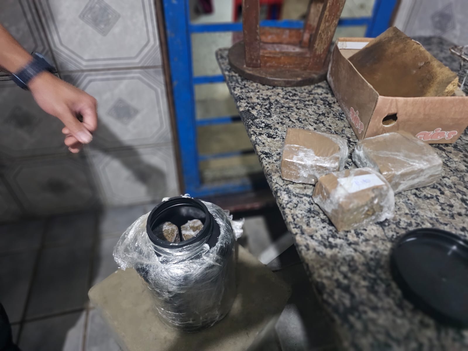 Inclusive, na residência do casal, foi apreendida grande quantidade de drogas, mais de três quilos de maconha.