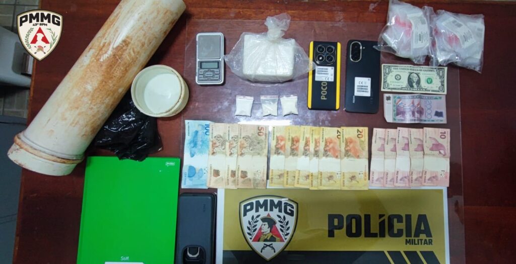 Nas buscas realizadas no imóvel, os policiais encontraram um tablete de substância análoga à cocaína, uma balança de precisão — comumente utilizada para fracionamento de drogas — além de dois aparelhos celulares e valores em dinheiro e moeda estrangeira. Entre os itens apreendidos estavam uma cédula de um dólar, uma cédula de dois mil guaranis e a quantia de R$ 420,00 em dinheiro.