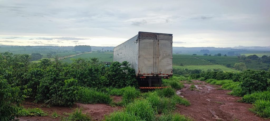 Já no dia 02/01/2025, a PM recebeu informações de havia um caminhão abandonado em propriedade na zona rural do município de Itamogi. Deslocando até o local, foi observado que o veículo se encontrava abandonado no cafezal sem ambas as placas de identificação. Após buscas no interior do veículo foi encontrada uma nota fiscal com informações do caminho entre elas e o seu número de chassi. Após consultas, foi constatado que o caminhão era produto de roubo ocorrido no dia 27/06/2024 no município de Miguelópolis/SP. Após verificação da numeração do chassi que se encontrava na cabine do veículo, foi verificado se tratar de uma adulteração no chassi original, sendo este remarcado com uma nova numeração de um caminhão com as mesmas características pertencente a uma empresa localizada no Rio Grande do Sul /RS.