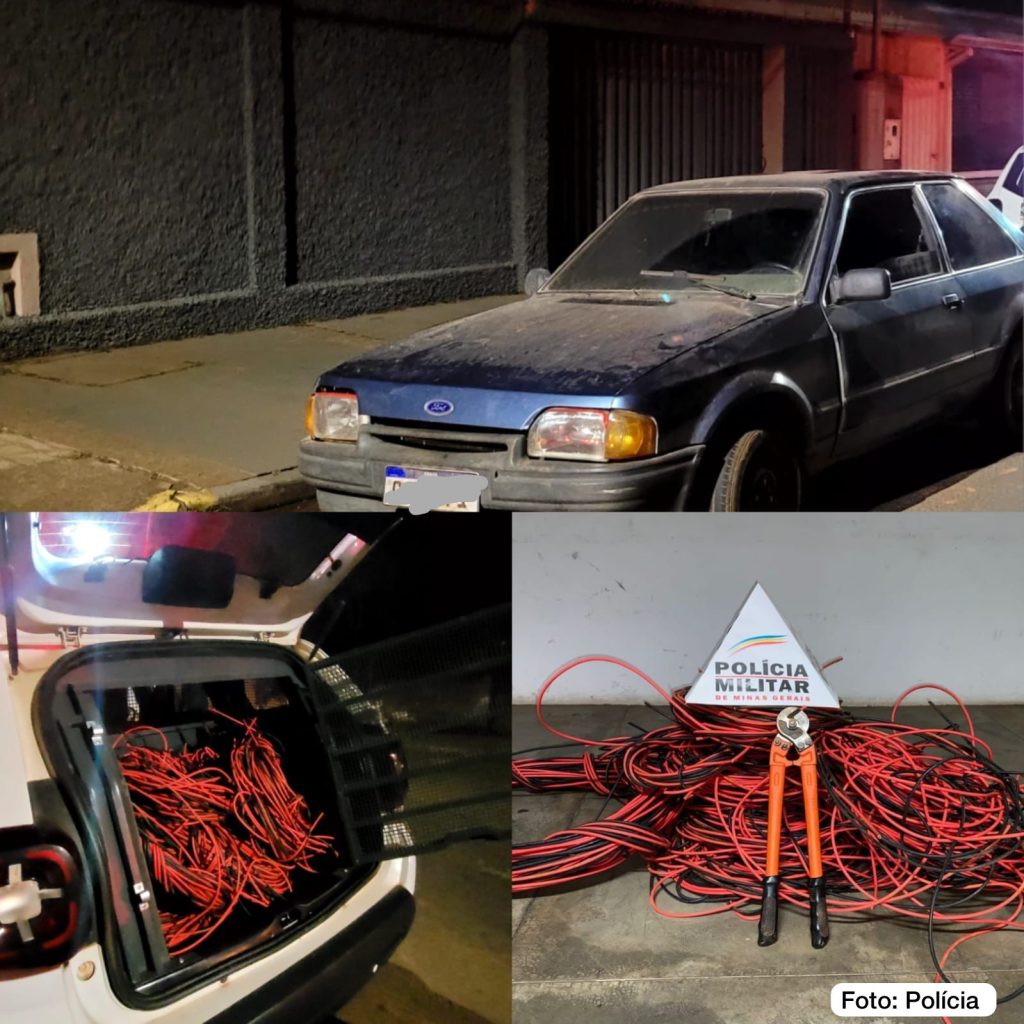 Durante a abordagem foi localizado no porta-malas do veículo uma grande quantidade de rolos de fiação elétrica e um alicate de corte. Os indivíduos não souberam explicar a origem do material inicialmente, contudo após várias contradições, eles confirmaram terem furtado aquele material de uma usina de energia fotovoltaica em uma fazenda que faz divisa com o loteamento Jd Diamantina. Os militares foram até o local e confirmaram o furto.
