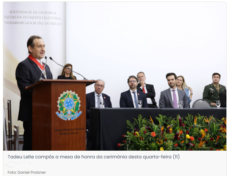 Ele ainda destacou a presença de diversas autoridades na cerimônia, entre elas a do presidente da Assembleia. De acordo com o homenageado, Tadeu Leite demonstra que Minas tem muito a contribuir com o Brasil a partir da atuação voltada ao interesse público.