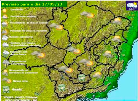 Clique aqui para conferir a previsão completa do Instituto Nacional de Meteorologia (Inmet).
