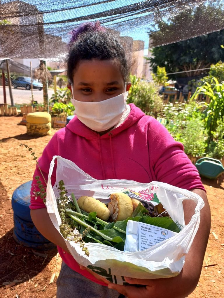 Idealizado por membros da comunidade universitária, o projeto beneficia cerca de 30 famílias com a produção e entrega de alimentos como alface, rúcula, repolho, goiaba, amora, agrião, peixinho, couve, cebolinha, salsinha e coentro, ou alimentos diversos que se produzem de forma mais abundante no verão, como abóbora, mandioca e chuchu. De acordo com a coordenação, até o momento, os produtos mais procurados ainda são as plantas medicinais, como hortelã, melissa, funcho, guaco, babosa, alfavaca, cana de macaco, arruda, folhas de manga, goiaba e outras.