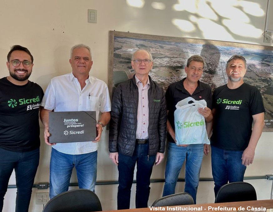 Para apresentar o Sicredi e seu projeto de expansão, representantes da cooperativa realizaram nos últimos dias visitas à prefeitura e entidades do município. No executivo municipal, a comitiva formada pelo presidente da cooperativa, Elmo Pedro Von Mühlen, pelo diretor Executivo, Roque Enderle e pelo gerente da agência no município, Vinícius Rabelo Vieira, foi recebida pelo prefeito de Cássia, Rêmulo Carvalho Pinto e pelo vice-prefeito, Ricardo Garcia Arantes. A equipe de atendimento da agência também visitou o Sindicato Rural de Cássia, onde foi recebida pelo presidente Domingos Inácio Salgado, e a Associação Comercial Industrial Agropecuária e Serviços de Cássia (Acic), com recepção feita pelo presidente, José Augusto Tambini Pinto e pelo gerente executivo, Luís Antônio.