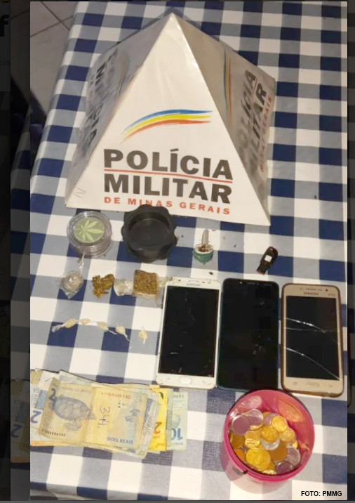 Também foi localizada a quantia total de R$ 1.225,90, sendo que parte do dinheiro estava com a mulher de 19 anos e outra parte foi localizada em um quarto.