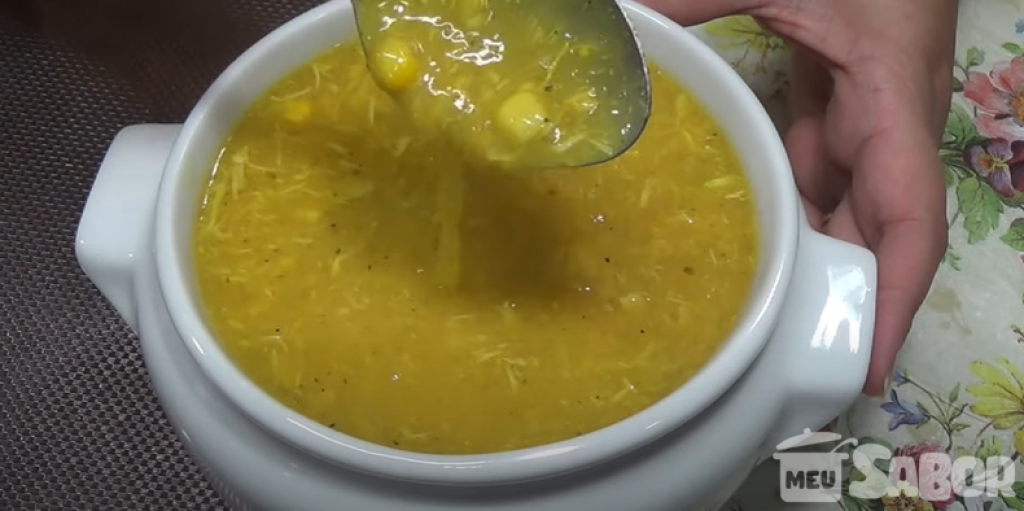 - Coloque o caldo da mandioca, adicione milho e cheiro-verde (a gosto).