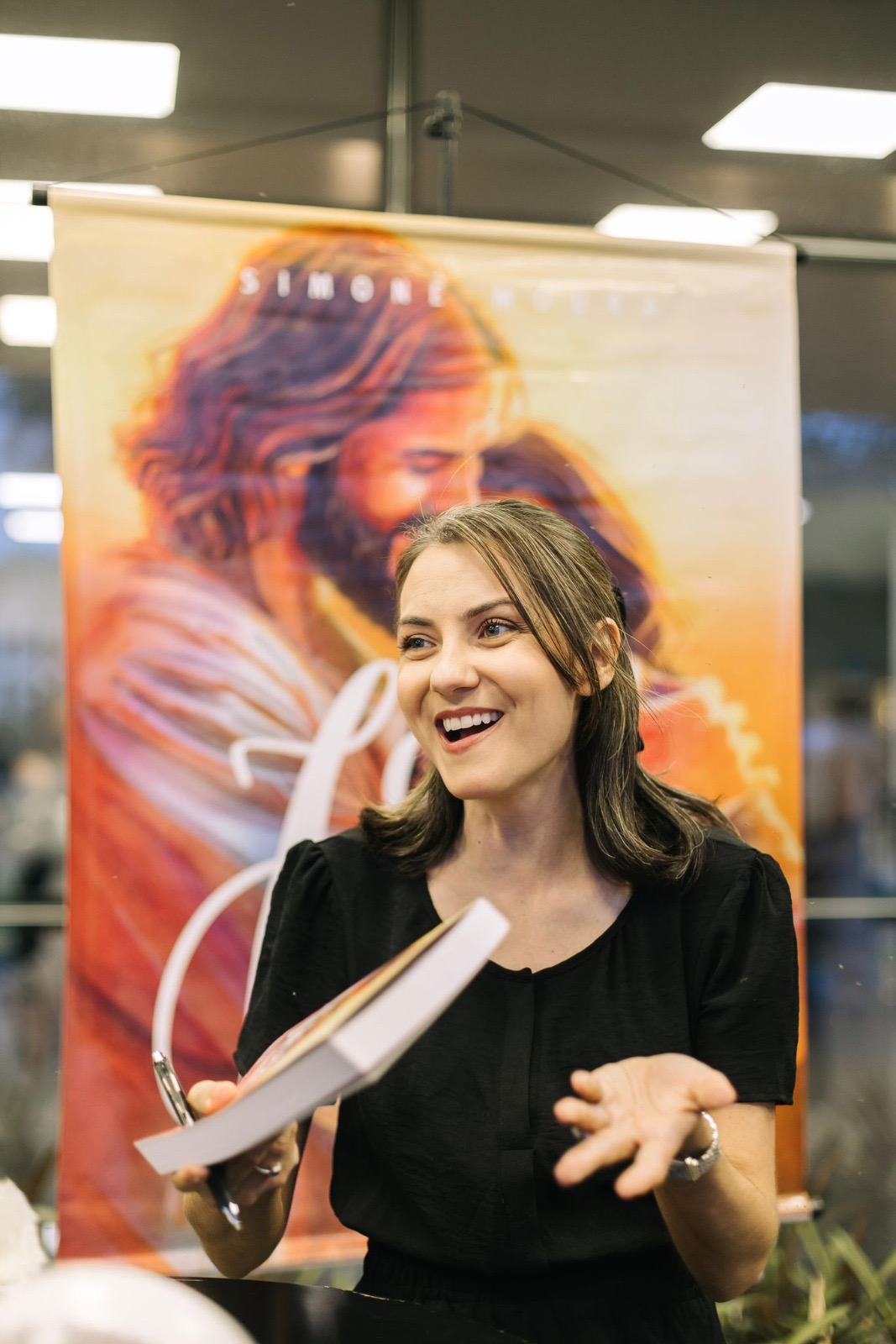 Desde 2012, Simone vive no Canadá, onde compartilha o amor de Deus por meio de suas redes sociais. A autora nasceu em Muzambinho, mas ainda muito pequena mudou-se da cidade. Na última semana, ela esteve no Brasil para o lançamento do devocional, em quatro eventos, dois em São Paulo, um em Poços de Caldas e um outro na região de Campinas, além de outros eventos fechados.