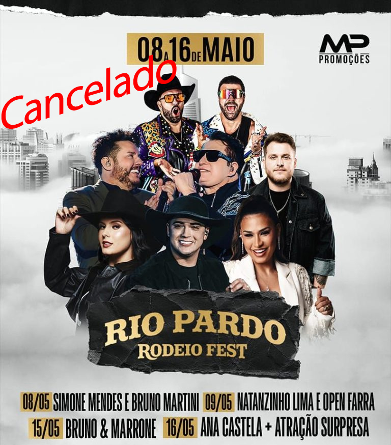 Este é o segundo revés enfrentado pelo público local neste ano. No início de 2026, o Rio Pardo Expo Music chegou a ser anunciado para o mês de abril, mas acabou transferido para a cidade vizinha de Mococa.