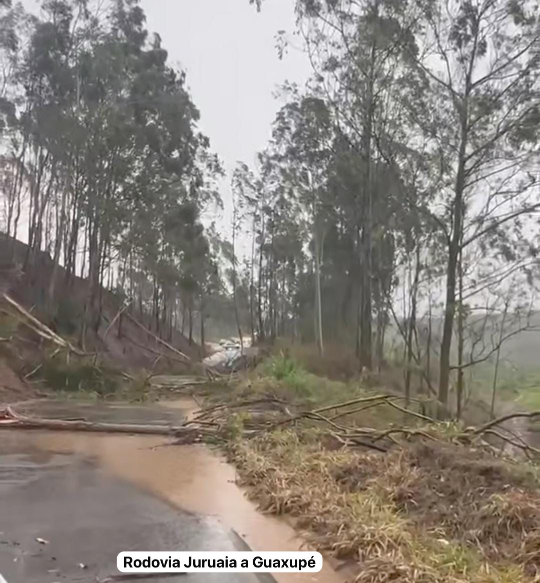 Entre Juruaia e Guaxupé, o cenário também foi de transtornos: várias árvores caíram ao longo da estrada, e equipes trabalham na limpeza e desobstrução dos trechos. O trânsito flui de forma lenta e com pontos de parada para manutenção.