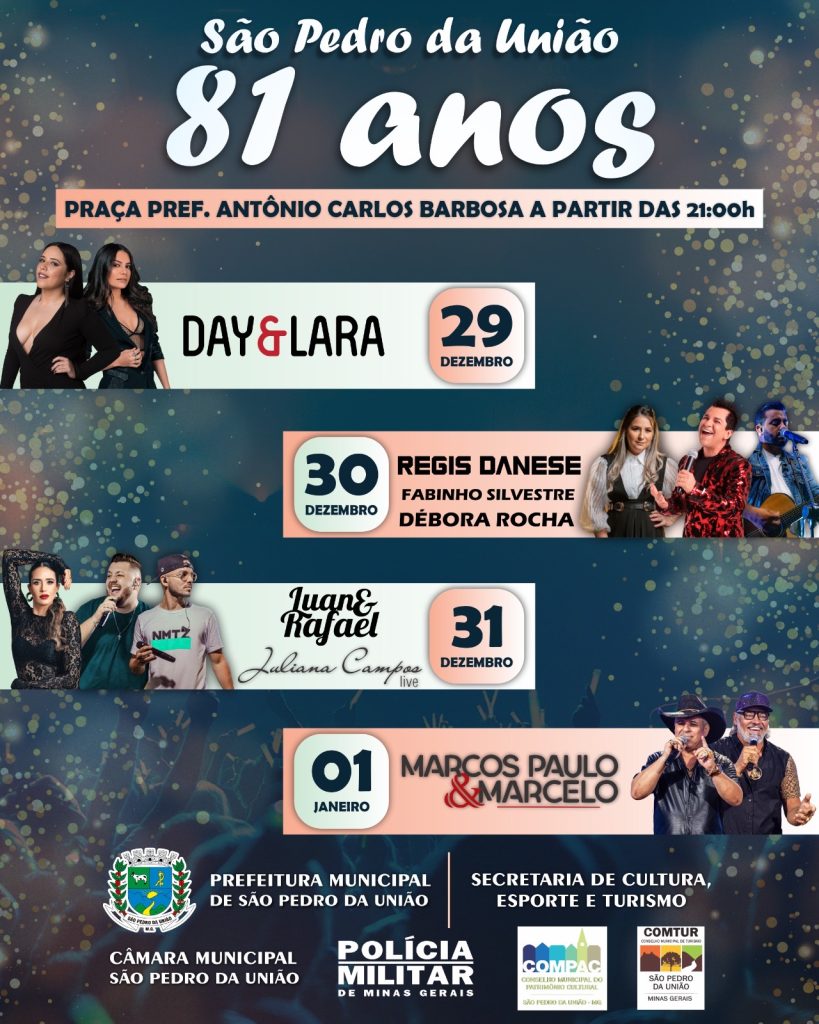 A fim de festejar os 81 anos de história da cidade, a Prefeitura Municipal e a Secretaria de Cultura, Esporte e Turismo irão promover uma comemoração repleta de atrações.