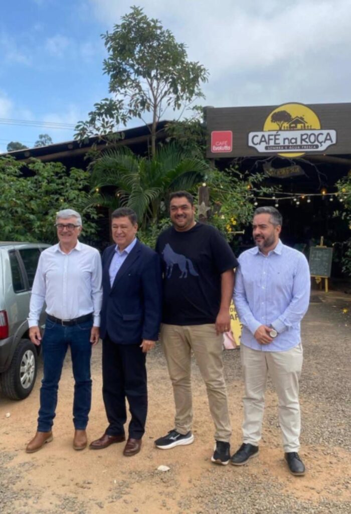 O senador e jornalista Carlos Viana cumpriu agenda no Sul de Minas ao lado de lideranças regionais, entre elas o prefeito de Muzambinho, Paulinho Magalhães, e o vice-prefeito e cafeicultor Juninho Bocoli. A comitiva visitou a Felinju, em Juruaia, e conheceu o modelo de empreendedorismo da cafeteria Café na Roça, situada na rodovia entre Guaxupé e Guaranésia.