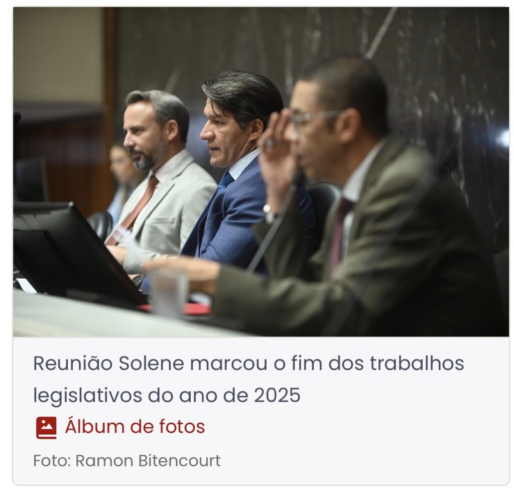 O deputado comunicou que, desde o dia 4/12/25, estão disponíveis no Portal da ALMG informações consolidadas sobre a produção legislativa.