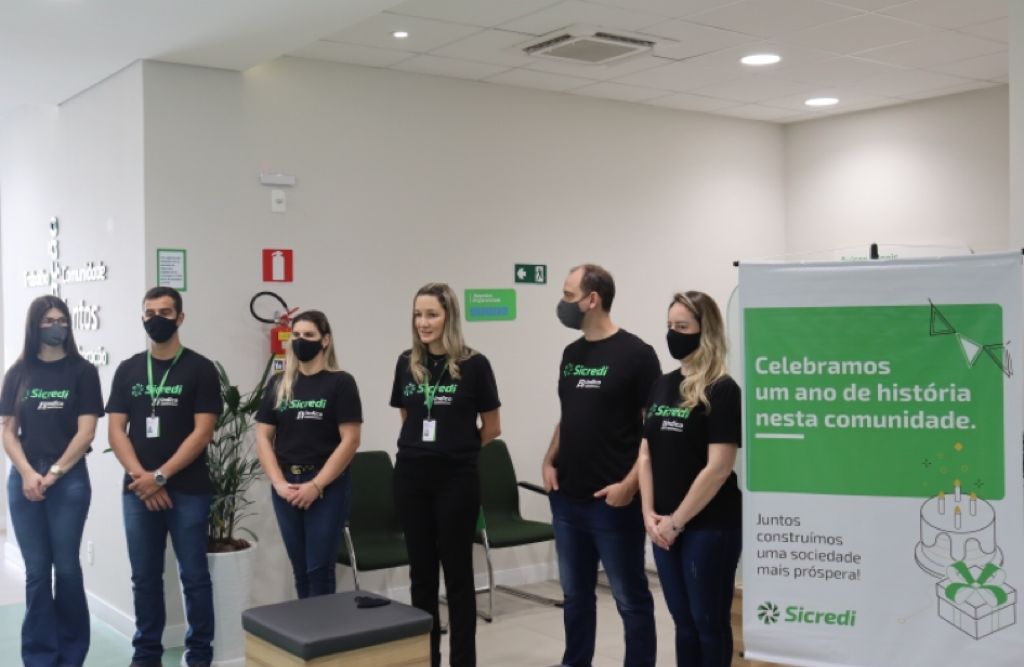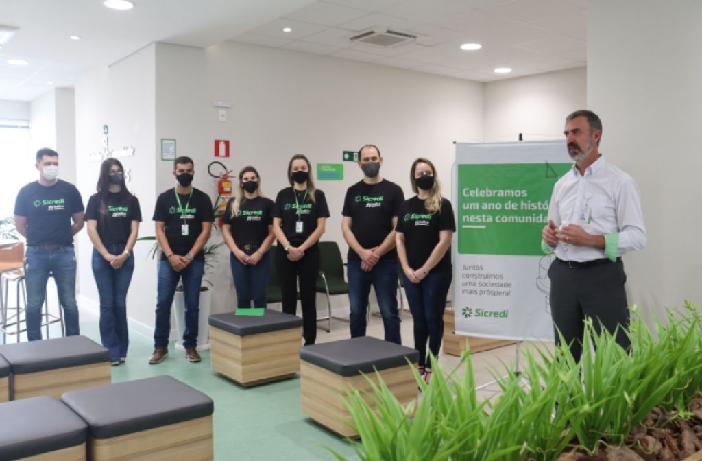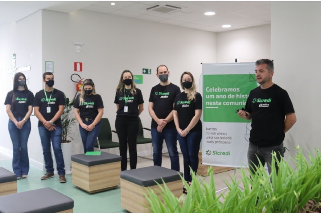 A Sicredi das Culturas RS/MG comemora neste sábado, 18, um ano de atuação no município de Guaxupé, em Minas Gerais. De forma escalonada e respeitando os protocolos sanitários, nesta sexta-feira, 17, a equipe de atendimento recebeu autoridades, representantes de entidades parceiras, coordenadores de núcleo, associados e imprensa para celebrar a data junto da comunidade.