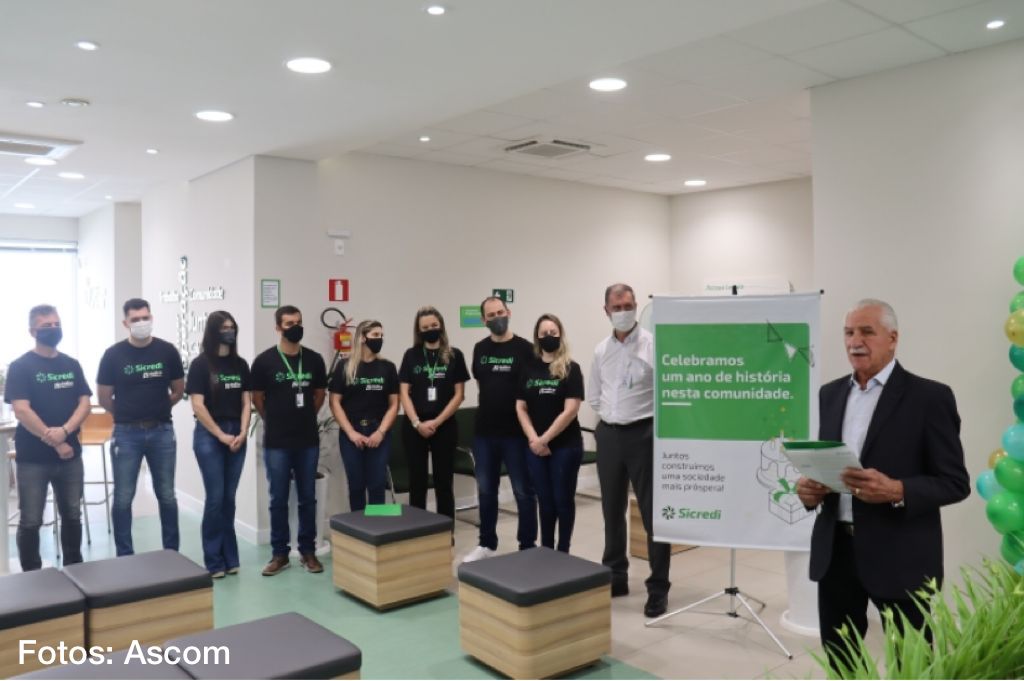 Apresentação da nova gerente: O momento também marcou a apresentação da nova gerente da agência para a comunidade. Milene Ferreira de Carvalho Charavallote é graduada em Jornalismo e pós-graduada em Gestão Empresarial. Atua há 17 anos em instituições financeiras e no Sicredi desempenhava a função de gerente de Negócios, assumindo o papel de gerente de agência a partir do mês de setembro. “Me sinto realizada por poder cooperar com o crescimento da comunidade em que nasci. A nossa função dentro do cooperativismo é muito gratificante: fazer o bem e realizar sonhos. É isso que me move. Os associados podem contar com o Sicredi como uma instituição parceira nos negócios, focada em realmente desenvolver e agregar renda na comunidade. O que mais gosto de fazer no dia a dia é estar perto dos associados e agora na nova função como Gerente de Agência, estarei ainda mais presente com os associados, atendendo e entendendo genuinamente as suas demandas e necessidades”. Elias Bussler, que atuou neste primeiro ano da agência como gerente, assumiu novos desafios na carreira profissional em instituições financeiras.