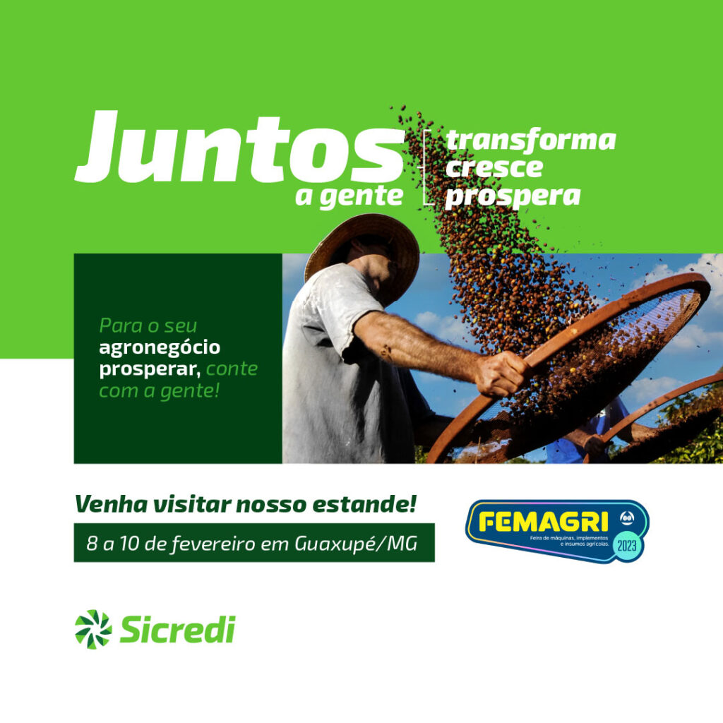 Com o conceito “Para o seu agronegócio prosperar, conte com a gente”, a Sicredi das Culturas RS/MG participa neste ano da Femagri – Feira de Máquinas, Implementos e Insumos Agrícolas, promovida pela Cooperativa Regional de Cafeicultores em Guaxupé (Cooxupé). A cooperativa de crédito levará à feira soluções financeiras que colaboram com o desenvolvimento e crescimento das propriedades rurais, com destaque para a modalidade de crédito CPR Fácil (Célula do Produto Rural). Nesta linha, o produtor rural pode utilizar o recurso para qualquer finalidade, com prazo para pagamento de 24 meses.