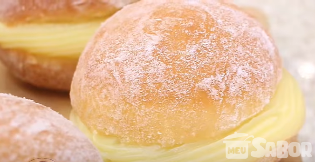 - Passe os sonhos em uma mistura de açúcar refinado com canela, corte-os ao meio e recheie com o creme.