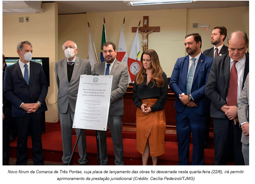 Segundo o presidente Gilson Lemes, o lançamento da pedra fundamental do novo fórum de Três Pontas insere-se no firme compromisso assumido pela atual gestão do TJMG, de oferecer à sociedade uma prestação jurisdicional de mais qualidade e de oferecer ambientes mais adequados a magistrados, servidores, colaboradores, estagiários, promotores de justiça, defensores públicos, advogados e jurisdicionados.