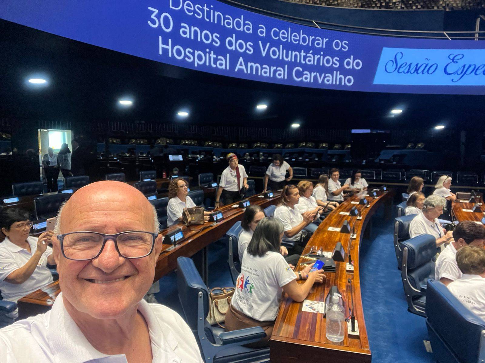 O trabalho solidário e dedicado dos voluntários no combate ao câncer foi celebrado em sessão especial no plenário do Senado Federal no dia 28 de abril pelos 30 anos do voluntariado no Hospital Amaral Carvalho (Jaú/SP), instituição reconhecida nacionalmente pelo atendimento oncológico e pelo compromisso com a vida. A iniciativa das homenagens foi promovida pelos senadores Marcos Pontes, conhecido por sua trajetória como astronauta, e Mara Gabrilli, reconhecida por sua atuação em defesa das pessoas com deficiência e causas sociais.